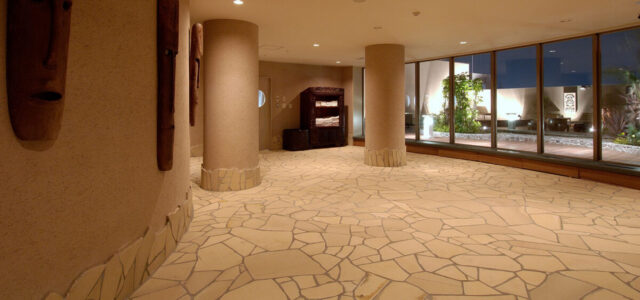 岩盤浴はバリの雰囲気を取り入れた空間で、自然石のヒーリング効果が魅力です。