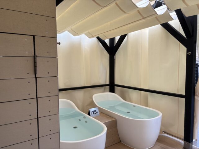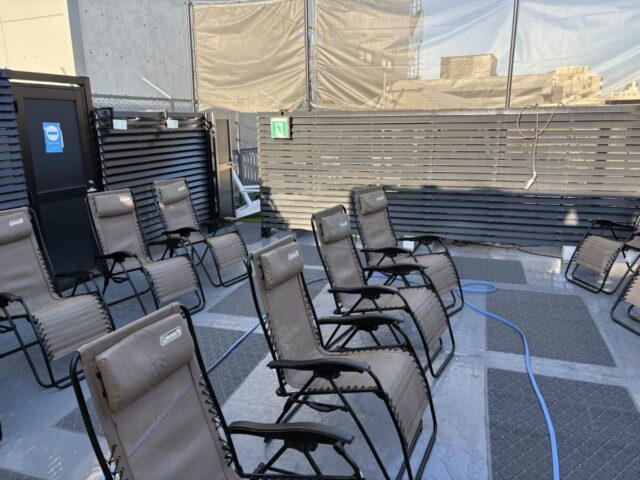 ブレインスリープといえば、大阪・関西万博のサウナ「太陽のつぼみ」や、TOTOPAなど、有名なサウナ施設で導入が進む最先端の“ととのい装置”である。ROOFTOPとのコラボでは、数台ではなく大量導入。男女片側だけでも万博サウナのととのいスペース以上の数だろう。外気浴エリアを見れば、サウナーへのととのいにこだわる本気度がバシバシと伝わってくる。