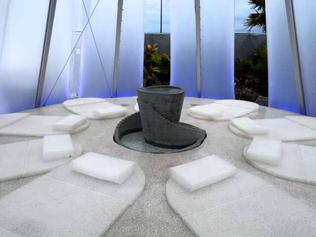 屋上の外気浴デッキに特許技術のマットレスとピローを大量導入。外気浴の“気持ちよさ”だけでなく深部体温のクールダウンまでを設計する。2025年10月から2ヶ月もの長期間に渡る贅沢なイベントだ。