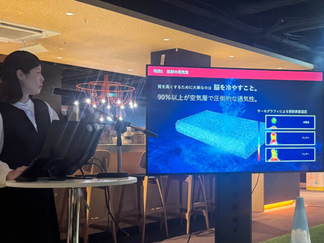 ブレインスリープのマットレスおよびピローは、繊維を編み込んだ通気性のいい構造により、熱と湿気を速やかに逃がすことを狙っている。面で頭部を支えながら放熱を促進し、のぼせを鎮める。外気という自然のクーラーに、寝具の熱マネジメントが加わることで、冷却のラスト1マイルを埋めるイメージだ。