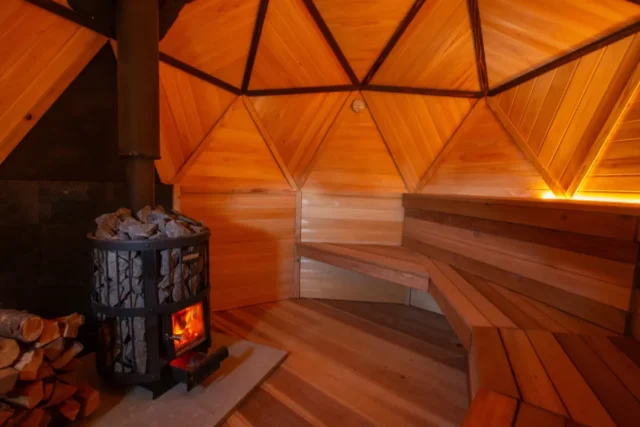 「kapy」と「valko」は薪を使用した本格的なアウトドアサウナで、それぞれ定員6名。独特のドーム形状を持つkapyサウナ室は、視覚的にも特徴的な空間となっている。「talvi」は電気式で定員4名、より手軽にサウナ体験を楽しめる設計だ。
