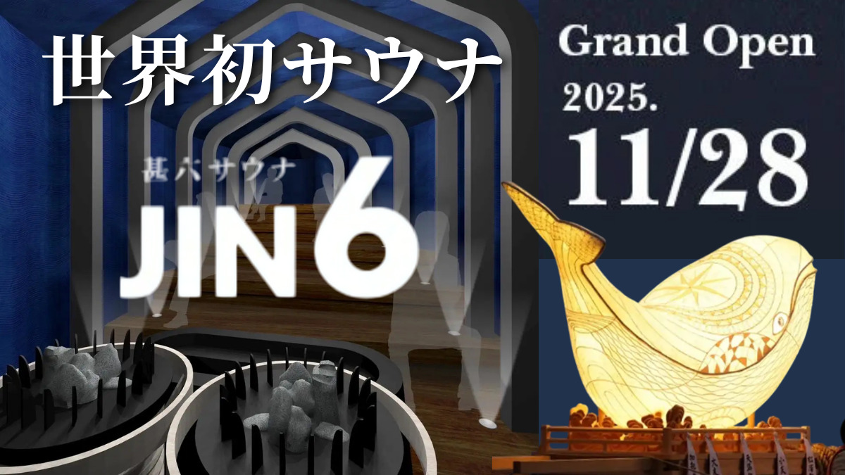 株式会社アミナコレクションは、佐賀県唐津市呼子町に新サウナ施設「JIN6サウナ(ジンロクサウナ)」を2025年11月28日にグランドオープンする。江戸時代に捕鯨で栄えた鯨の町・呼子の海とまちの営みを、五感で楽しめるサウナ体験として表現した日本初満載の施設だ。