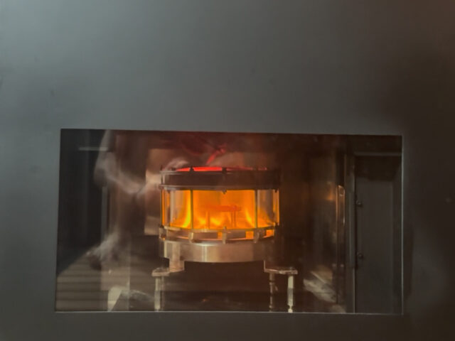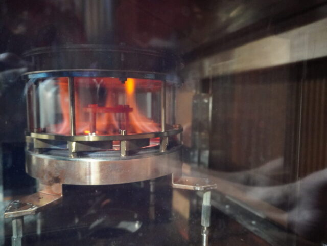ここで不思議なことが2つある。1つは、いわゆるスチームが見えない。生成され、燃焼と同時に空気に舞った水が具体的にどこに浮遊しているかがわからない。ただ、ドライサウナのうような体感は一切ないから、高湿度なのはよくわかる。なんせ呼吸がしやすく汗をかきやすいからだ。また体感だけでなく、今回ガイドをしてくれたTTNEの滝本氏からも高湿度であることは測定済みだという。