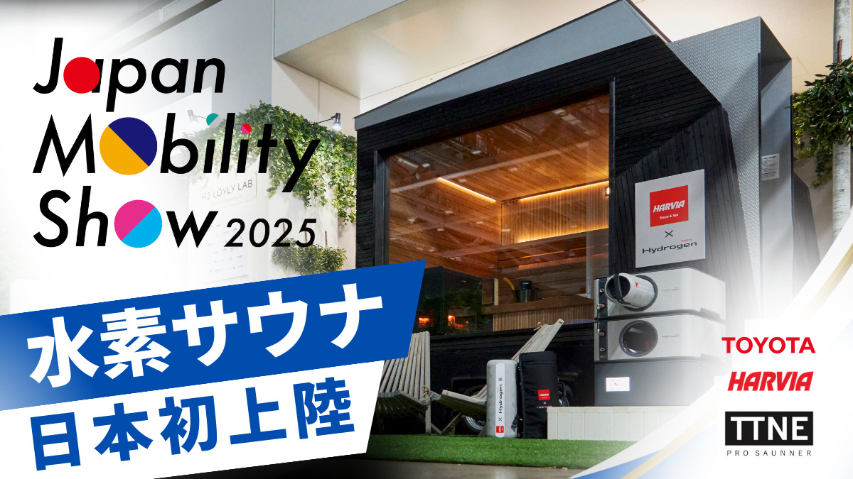 2025年10月30日から11月9日まで開催された「Japan Mobility Show 2025」で、トヨタとHARVIAがフィンランド・ユヴァスキュラで共同開発した世界初の”水素サウナ”が日本初公開された。