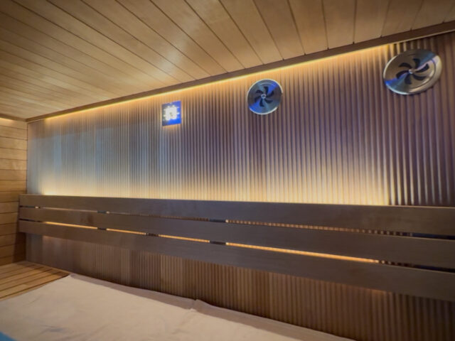 サウナ室に入った瞬間の体感を言語化するならば、「爽やか」「軽やか」「心地いい」、そんなワードばかりが出てくる。呼吸がしやすく、想定していたサウナで感じる熱圧などの重みがない。ここまで爽やかなサウナ室は最近でも記憶にない。熱感が圧倒的に軽いのだ。