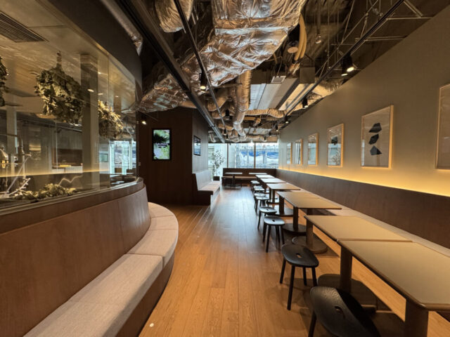 LUFTBAUMエリア:ルミネ初の高層階ゾーンで、地上150mの「都心の別荘」をイメージした。500本超の植物、屋外庭園、イマーシブオーディオ、絶景眺望を活かしている。オールデイダイニングやステーキハウスで、五感を刺激する非日常体験を届ける。