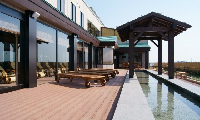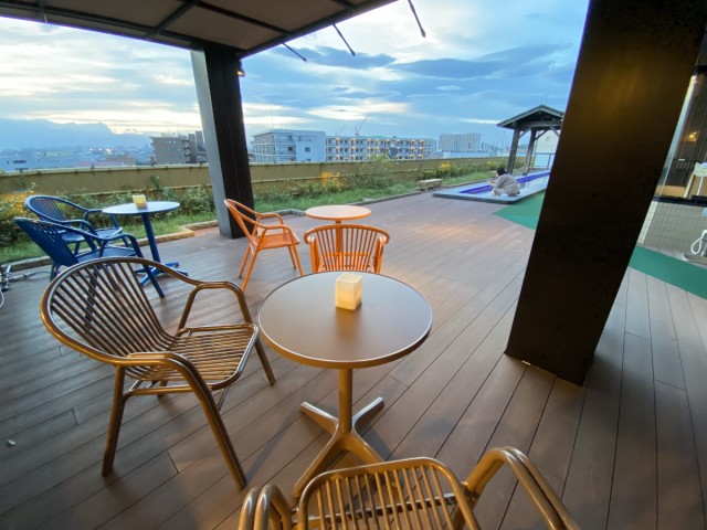 屋外休憩 | 9階のデッキと7階の足湯エリアにもデッキがある。 |