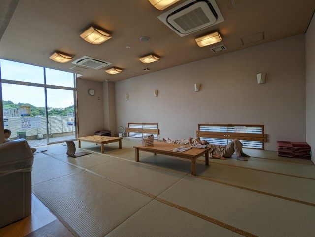 休憩スペース | コンセントなし | 机が2つ置かれた15畳ぐらいの座敷。座椅子や座布団もある。 |