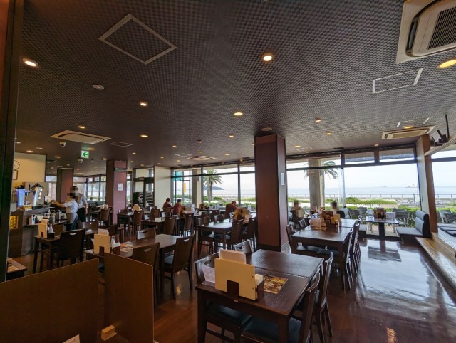 レストラン | コンセントなし | 海鮮、肉、麺類、揚げ物、定食、丼ものとバラエティ豊かな和食が用意されている。テーブル席とカウンター、掘りごたつ席があり、窓からは海が見えるオーシャンビュー。値段はやや高め。 |