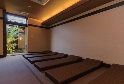 岩盤浴専用 | コンセント不明 | 窓から緑が見えるリクライニングのお休み処や床暖房のオンドル、ゆっくりと漫画を読みながらくつろげる漫画コーナーがあります。 館内着着用している方なら誰でも入れます。 |