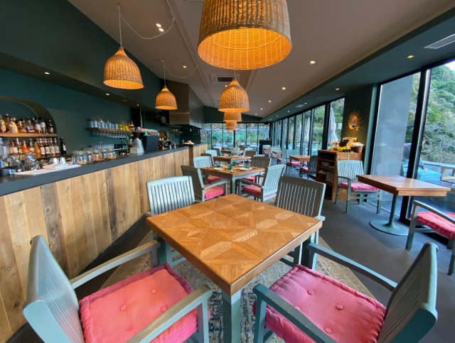 レストラン | コンセントなし | パエリアなど海辺らしいメニューが豊富。地元の勝浦のシーフードを使用。 ガラス張りのオーシャンビューで絶景。 ※無料Wi-Fiでカフェ感覚で作業もできる。1オーダー以上必要。 |