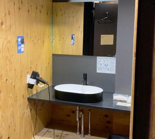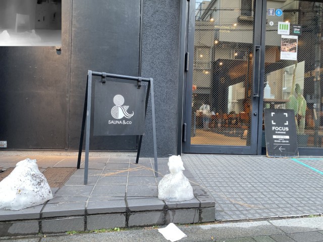 休憩スペース | コンセントあり | ホテル「FOCUS KURAMAE」の宿泊者と、サウナ利用者用のテーブル席がある。 |