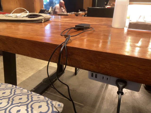 作業スペース | コンセントあり | 休憩エリアが作業スペースとしても使える。USBの口もついたコンセントがテーブルの各所にある。 |
