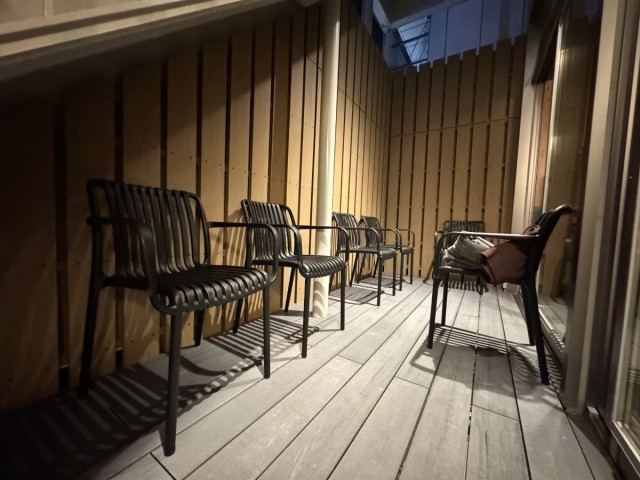 個室サウナROOM2,3には専用の外気浴がある。 それぞれLafumaが1台ずつ。チェアが2台。