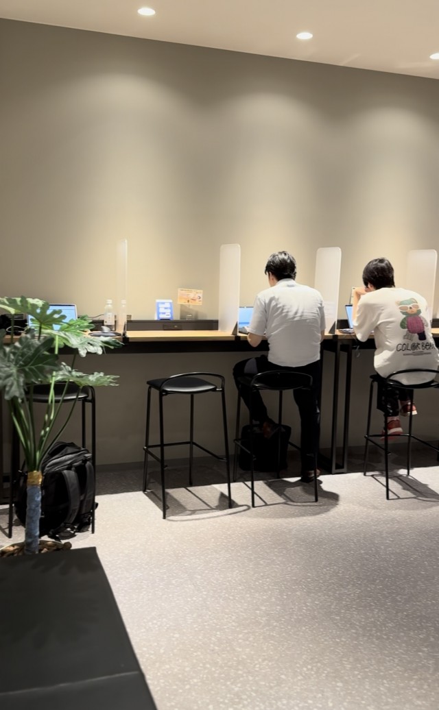 作業スペース | コンセントあり | カウンターが数席。ハイチェアのため、長時間の作業は好ましくない。充電は各席で可能。 ノートPCを1台おける程度のテーブルの広さ。 |