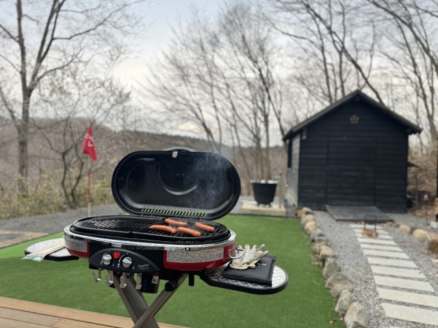 屋外休憩 | BBQのできるウッドデッキ、パターゴルフ場、山を見下ろせるととのいスペース付き。 |