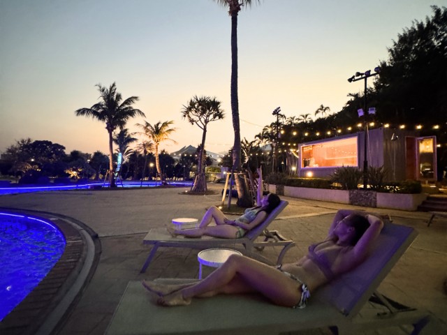 屋外休憩 | 屋外アウトドアサウナエリアは、チェアやウッドベッド、プールサイドバーもある。 |