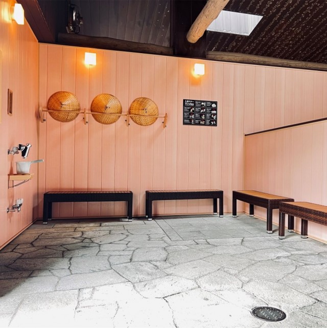 濃塩源泉を直に蒸したミストサウナ。 温度は48℃設定です。 きめ細かい水蒸気と温泉の香りに優しく包まれます。