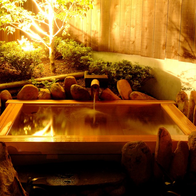 都心では珍しい露天の外気浴が充実。 季節の木々に囲まれ、そよ風と水の音に包まれた外気浴は本当に心地いいです。 夜、星空の下での“ととのい”は格別ですよ。