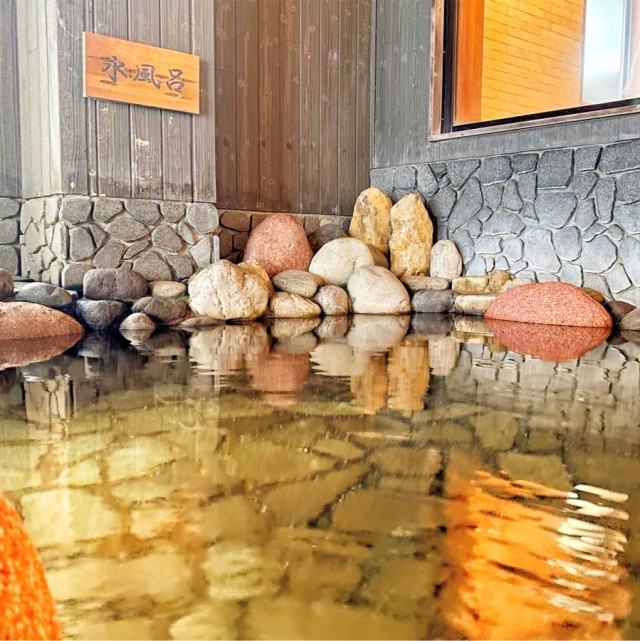 軟水を水温安定装置チラーで14℃に冷やした水風呂。 大きな岩風呂は2.5tもの冷水が入ります。 火照った体を良く冷えた水風呂で締めてください。