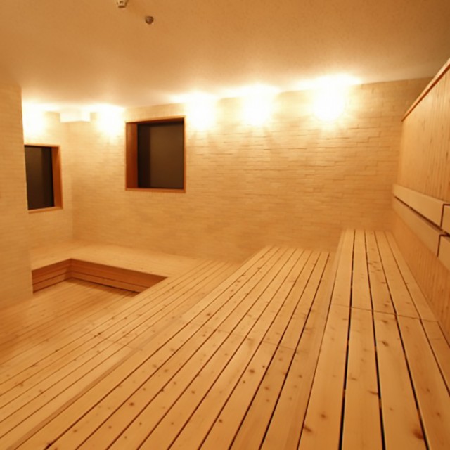 都心では広い高温サウナは90℃設定。 サウナ用ビート板貸出があります。 冷えた水風呂、露天の外気浴の相性が抜群です。